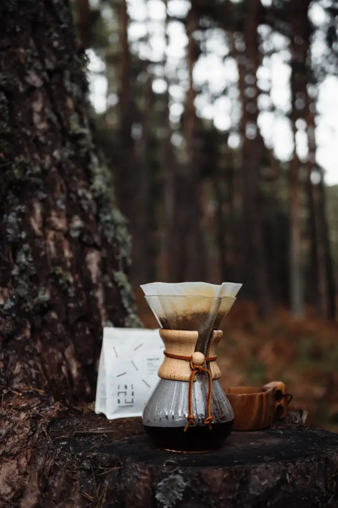 The Chemex coffee maker stands out at first glance for its iconic design. Created in 1941 by chemist Peter Schlumbohm, it features a thicker filter that controls extraction and highlights the coffee's clarity and nuances. The result is a clean yet full-bodied cup, ideal for those seeking precision and elegance in their preparation.