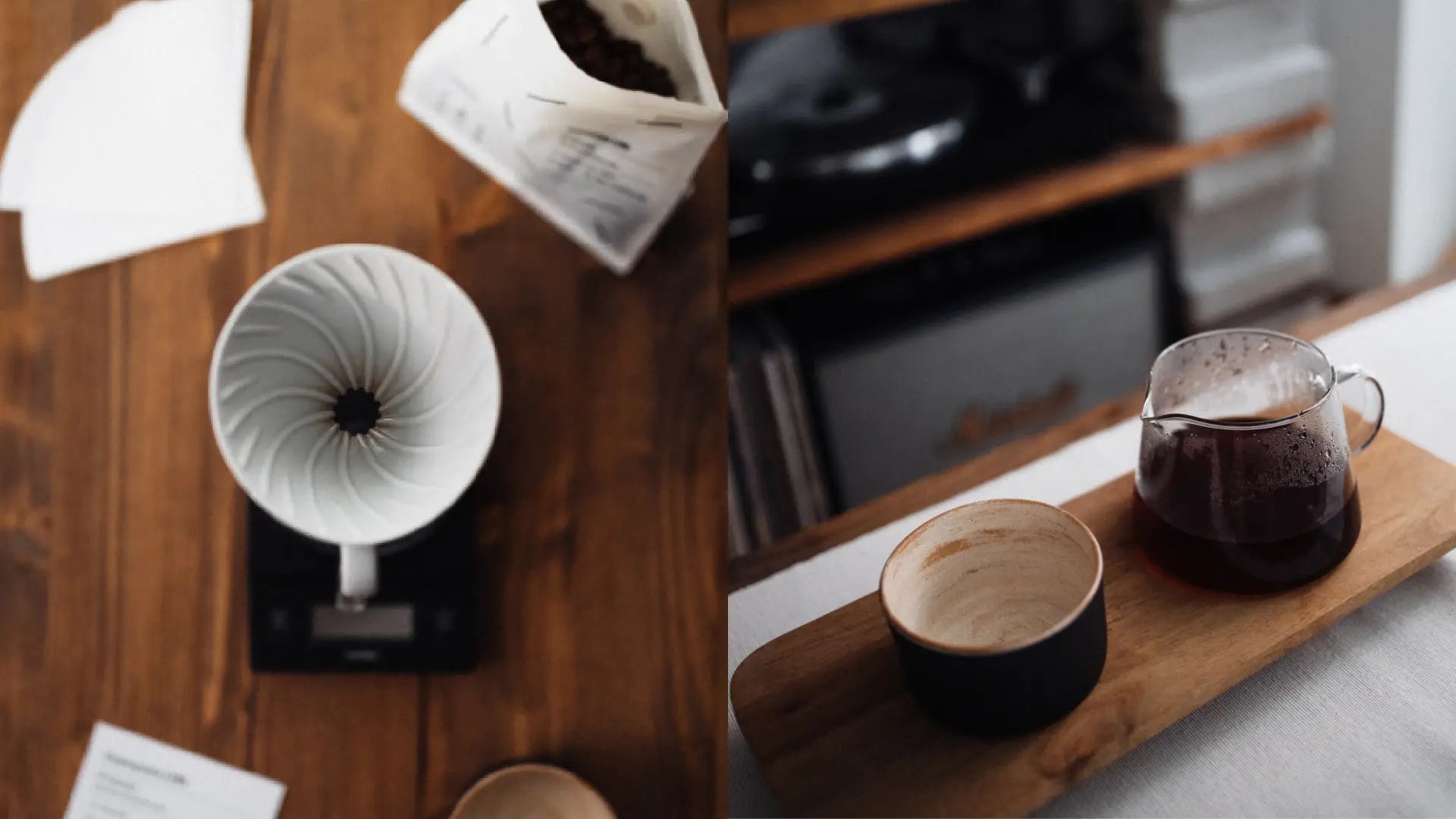 The Hario V60 and Origami coffee makers, both with conical bottoms, are drip brewing methods that stand out for their versatility. The Hario V60, created in Japan, features a conical design with spiral grooves that promote controlled water flow, allowing for a clean and complex cup. Meanwhile, the Origami, with its striking aesthetic and 20 slots, offers greater adaptability to different filter types and pour-over techniques, providing a personalized experience for filter coffee lovers.