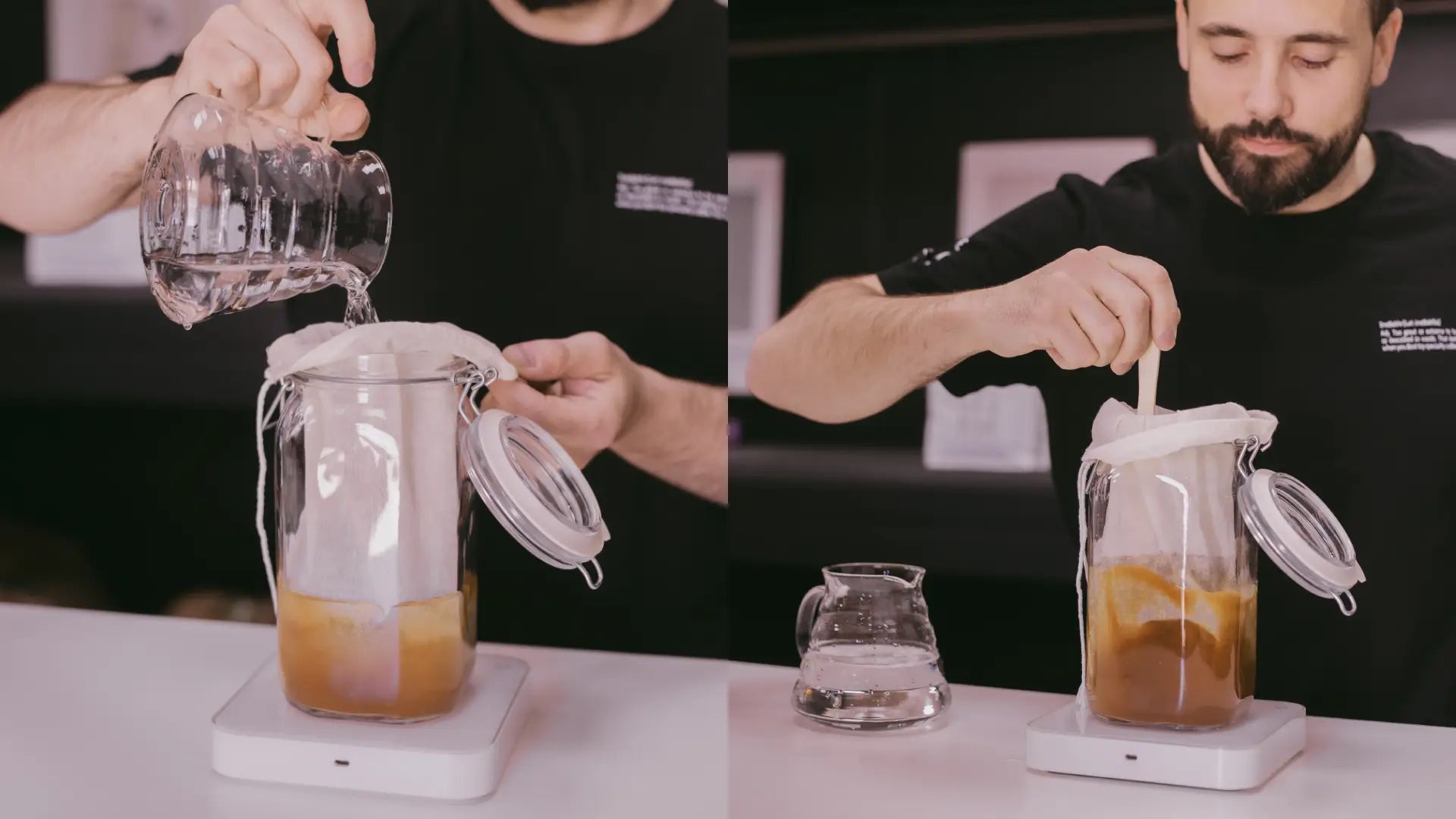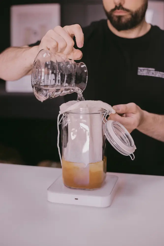 - Como paso extra, puedes volver a filtrarlo por un filtro de papel V60, Kalita o similar para obtener un resultado más limpio y cristalino.