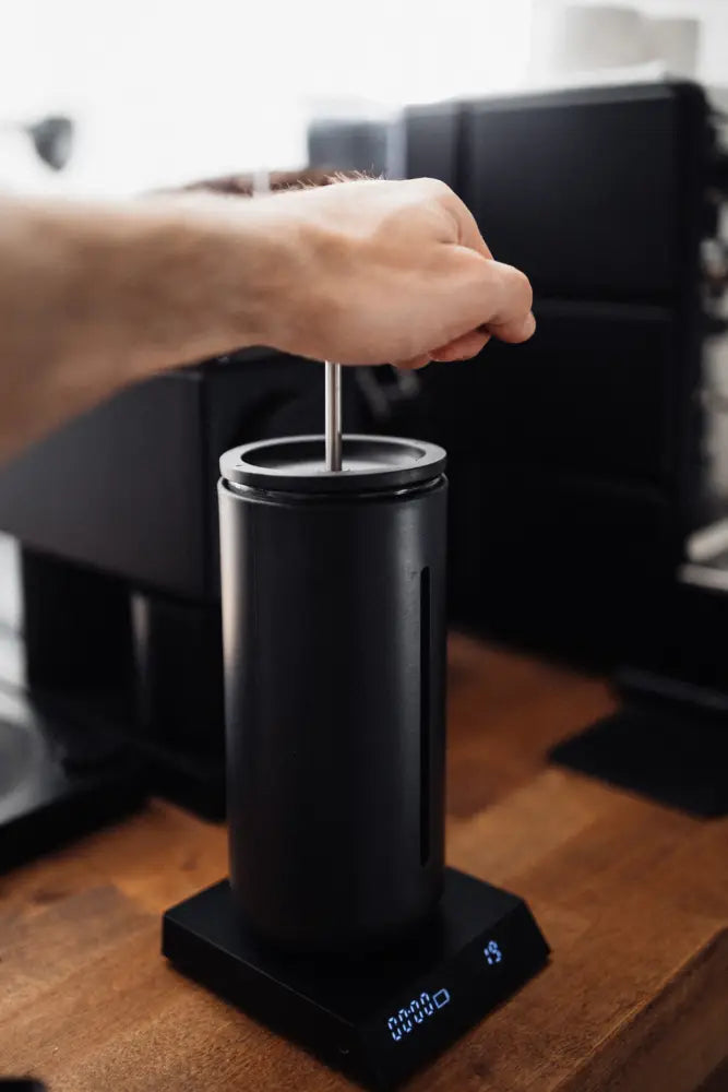 - Después de los 6:00 minutos baja el émbolo y sirve el café. Disfruta!
